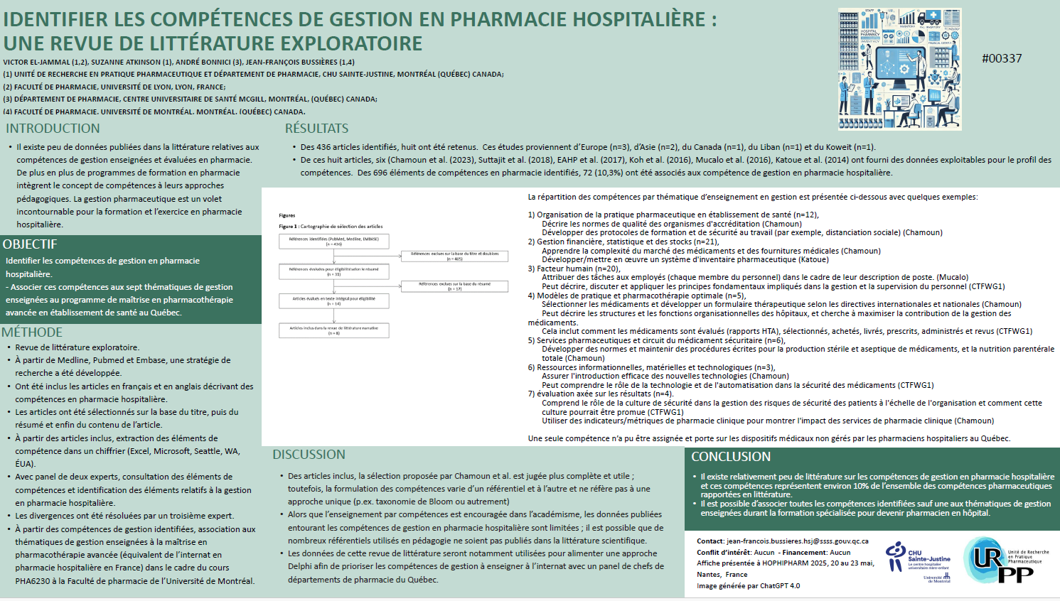 Vous pouvez consulter notre afficheprésentée au congres Hopipharm, à Nantes, France le 20-23 mai 2025.