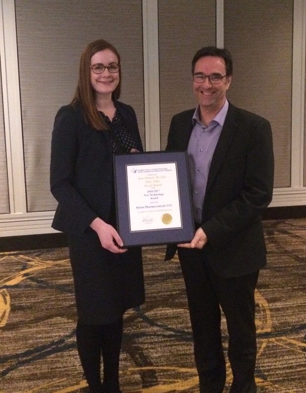 Lors de la remise, Kristen Pigden de Mylan Pharmaceuticals ULC, partenaire financier de la SCPH pour la bourse remise et Jean-François Bussières, représentant les membres de l’équipe de l’URPP – Toronto, ON, Canada, 5 février 2017.