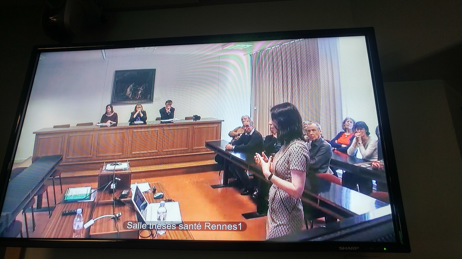 Participation en visioconférence de Montréal avec l’équipe de l’URPP incluant JF Bussières, directeur de thèse. On retrouve trois des cinq membres du jury et Sophie Dubois au coin droit. 6 avril 2017