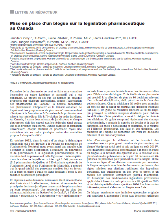 Nous vous invitons à vous abonner à ce blogue. Vous pouvez également consulter notre article publié dans le Pharmactuel sur le sujet.