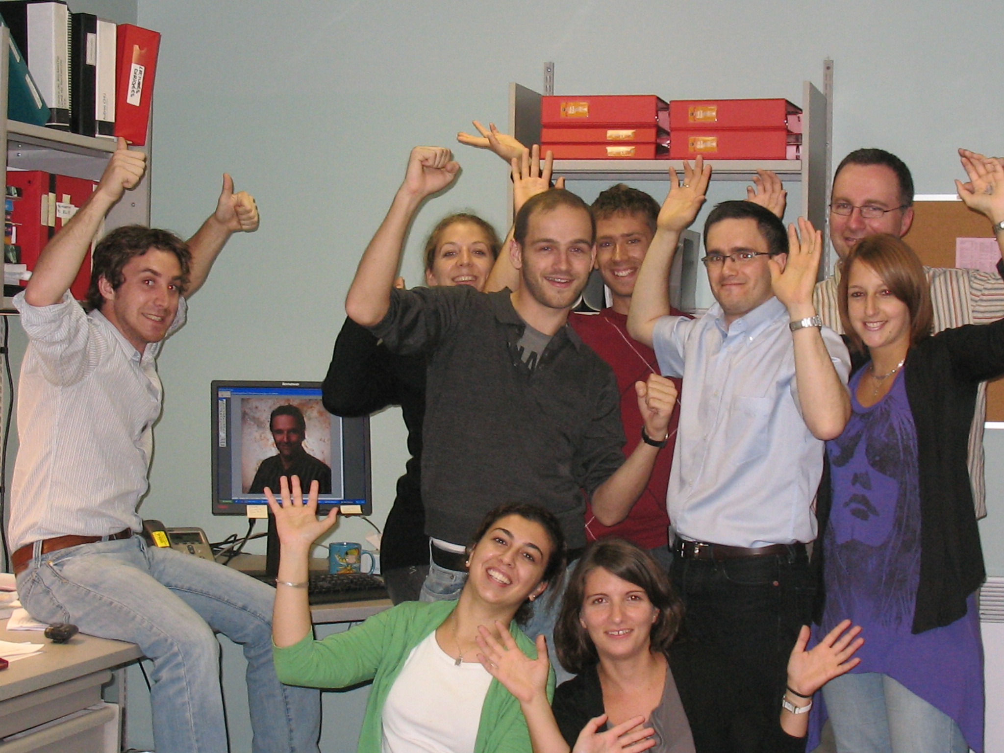 De gauche à droite: Fabien Hermine, Anais Delicourt, Jean-François Huon, Guillaume Faubert, Pierre Barret, Denis Lebel, Karine Touzin – et 2ème rangée – Saadia Skalli, Nancy Marando