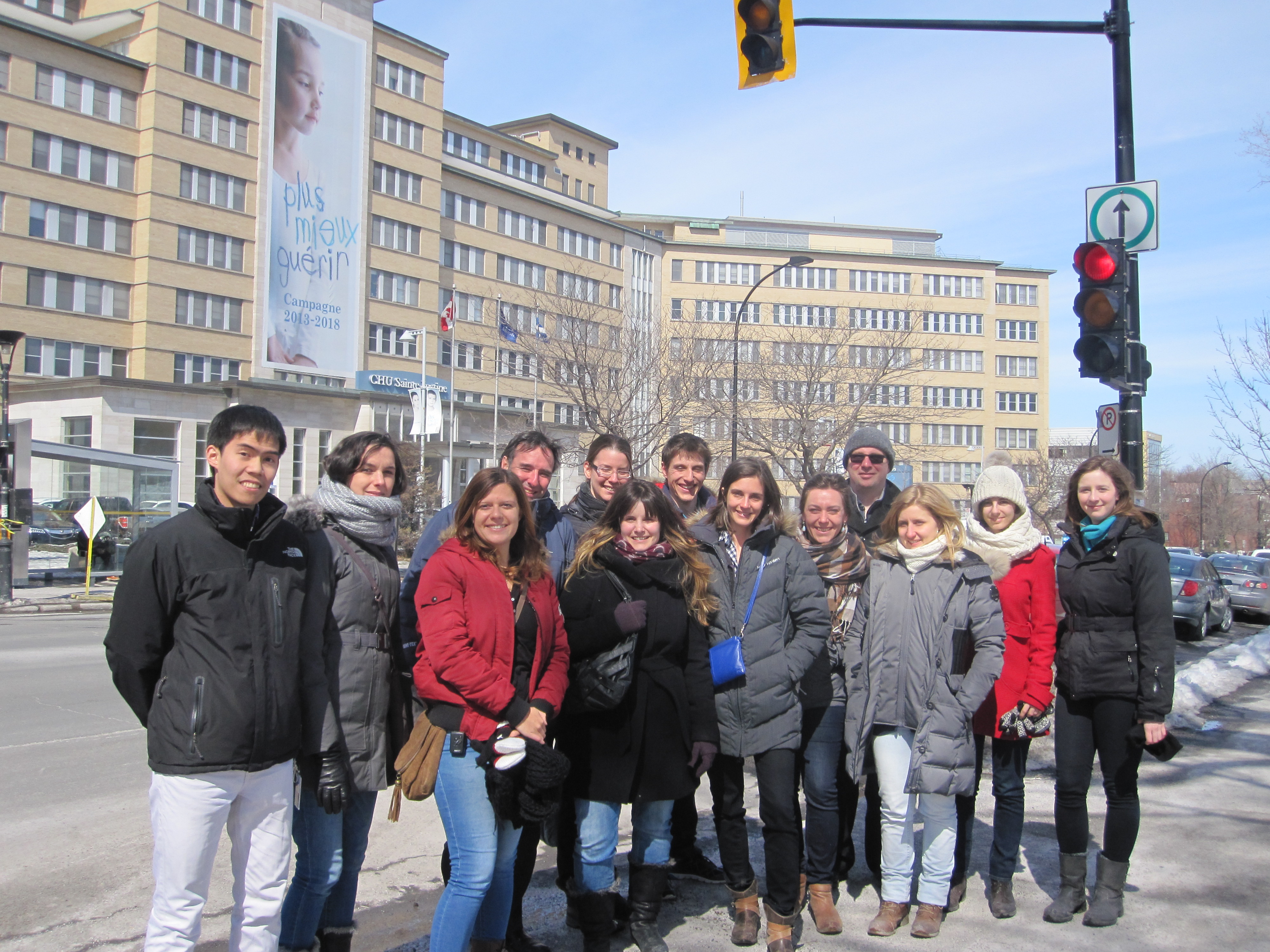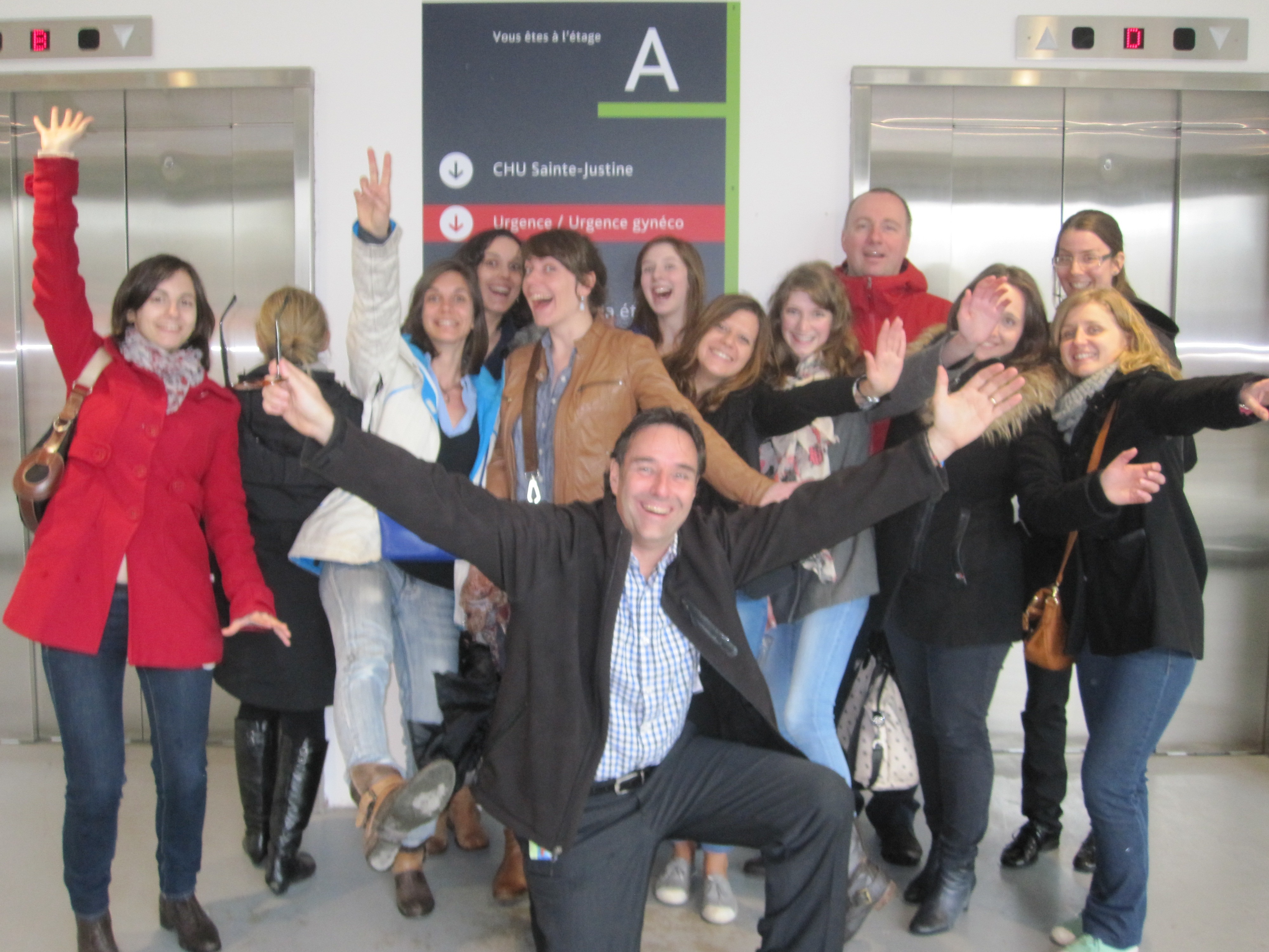 De gauche à droite: Léna Cérutti, Suzanne Atkinson (de dos), Mathilde Billaux, Céline Poupeau, Jean-François Bussières, Roxane Pelletier, Jennifer Corny, Denis Lebel, Perrine Drancourt, Mylène Breton, Cynthia Tanguay