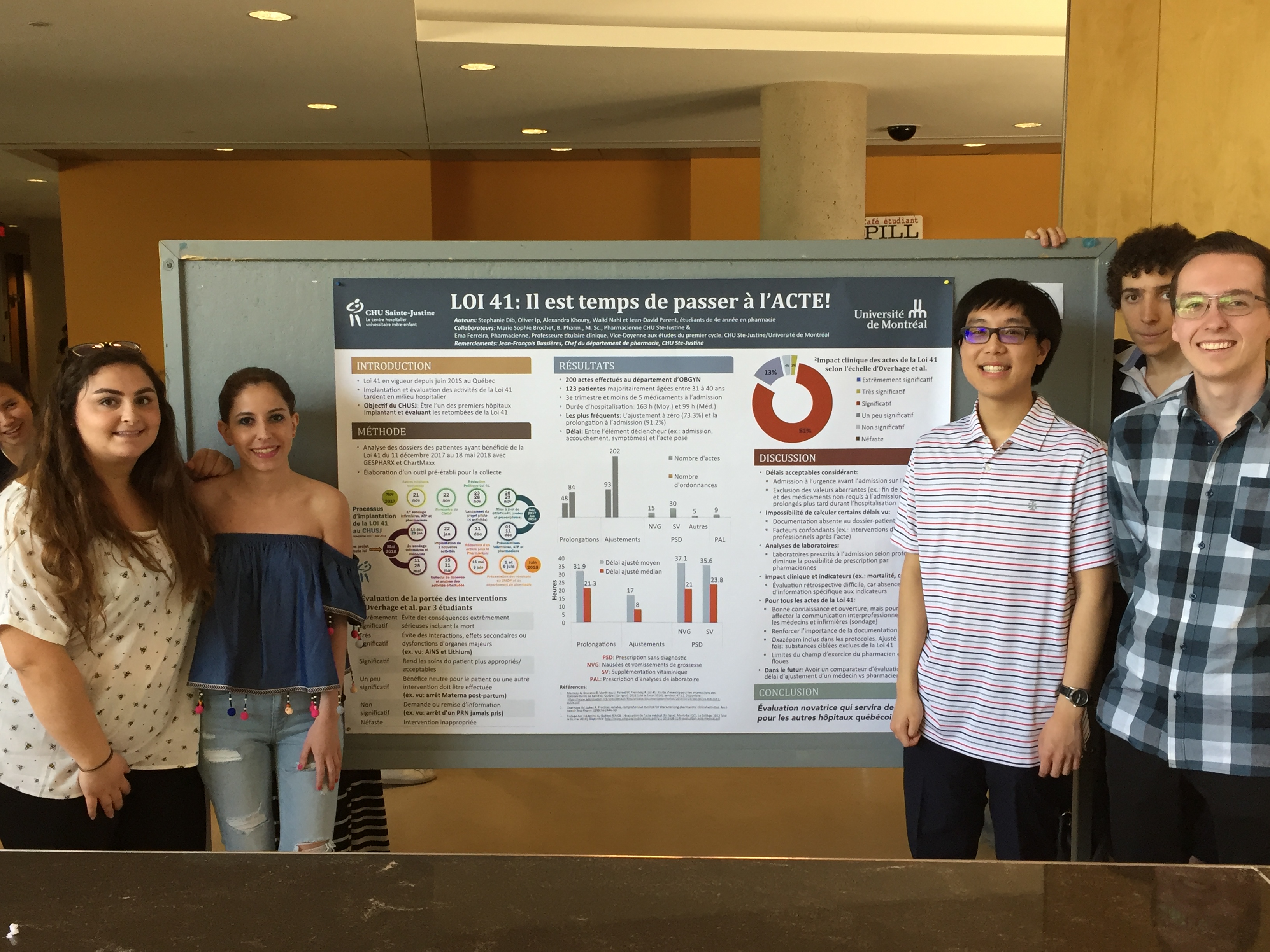 Bravo à Oliver Shane Ip Wan Fat, Stephanie Dib, Walid Nahi, Alexandra Khoury et Jean-David Parent pour leur projet réalisé au CHU Sainte-Justine dans le cadre de leur stage d’intégration au terme de leur Doctorat professionnel en pharmacie. Sous la gouverne de Marie-Sophie Brochet, Ema Ferreira et coll, pharmaciennes, ils ont contribué à la mise en place effective des nouvelles dispositions reliées à la loi 41 auprès des patients d’obstétrique-gynécologie.