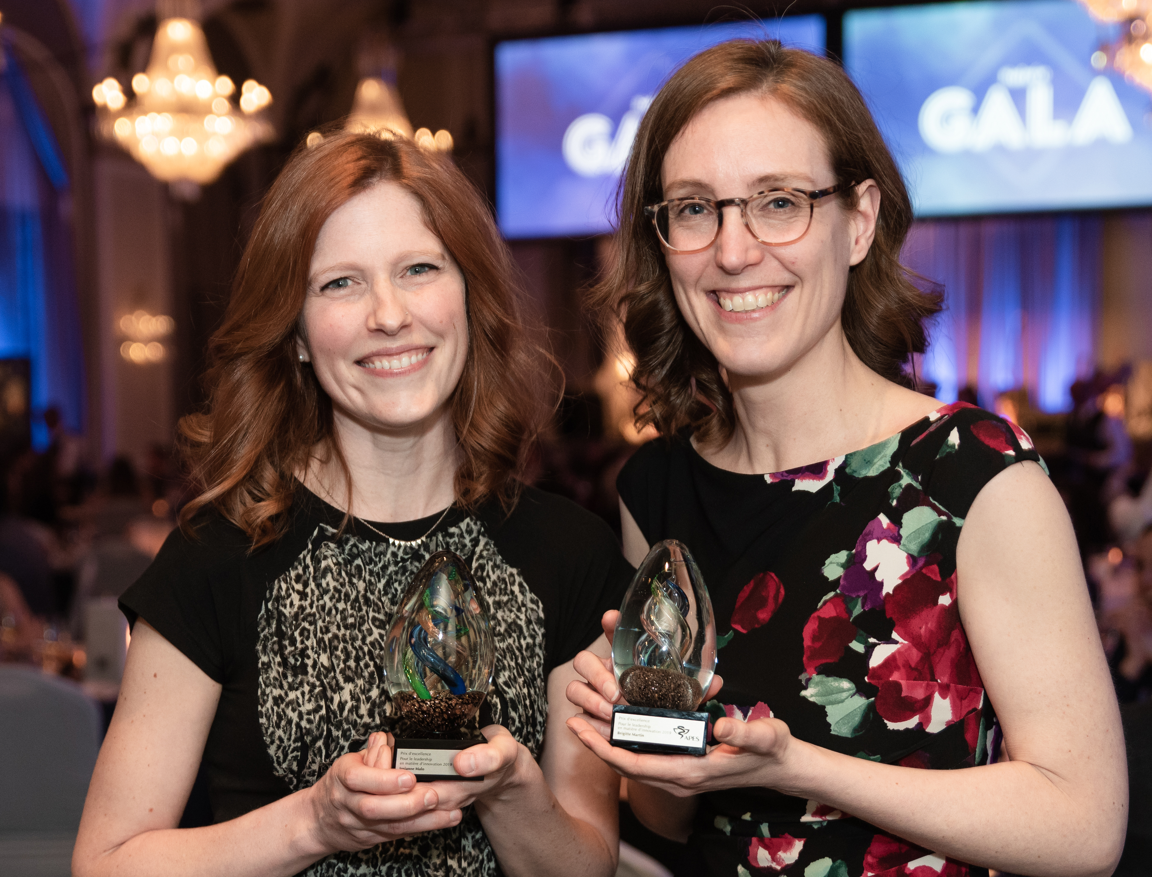 Dans le cadre du Grand Forum de l’APES 2019 tenu au Chateau Frontenac à Québec le 28 mars 2019, Brigitte Martin et Josiane Malo, pharmaciennes au département de pharmacie du CHU Sainte-Justine ont été honorées pour leur innovation. Brigitte et Josiane exercent en soins intensifs de néonatologie depuis plusieurs années. Ces deux pharmaciennes ont développé le Guide pratique des médicaments en néonatologie au CHU Sainte-Justine, un outil complet qui est le fruit d’une collaboration interdisciplinaire étroite entre elles et leurs collègues infirmières et médecins spécialistes. Il s’agit d’un outil spécialisé très utile aux membres du CHU Sainte-Justine, mais également à la communauté internationale, puisque l’équipe a choisi de rendre disponible son outil gratuitement en ligne (https://www.chusj.org/fr/soins-services/P/Pharmacie/Outils/Guide-Pratique). Un tel travail requiert pertinence, excellence, minutie, interdisciplinarité …. comme est leur contribution au quotidien de cette équipe de soins qui accueillent jusqu’à 65 petits patients à la fois.