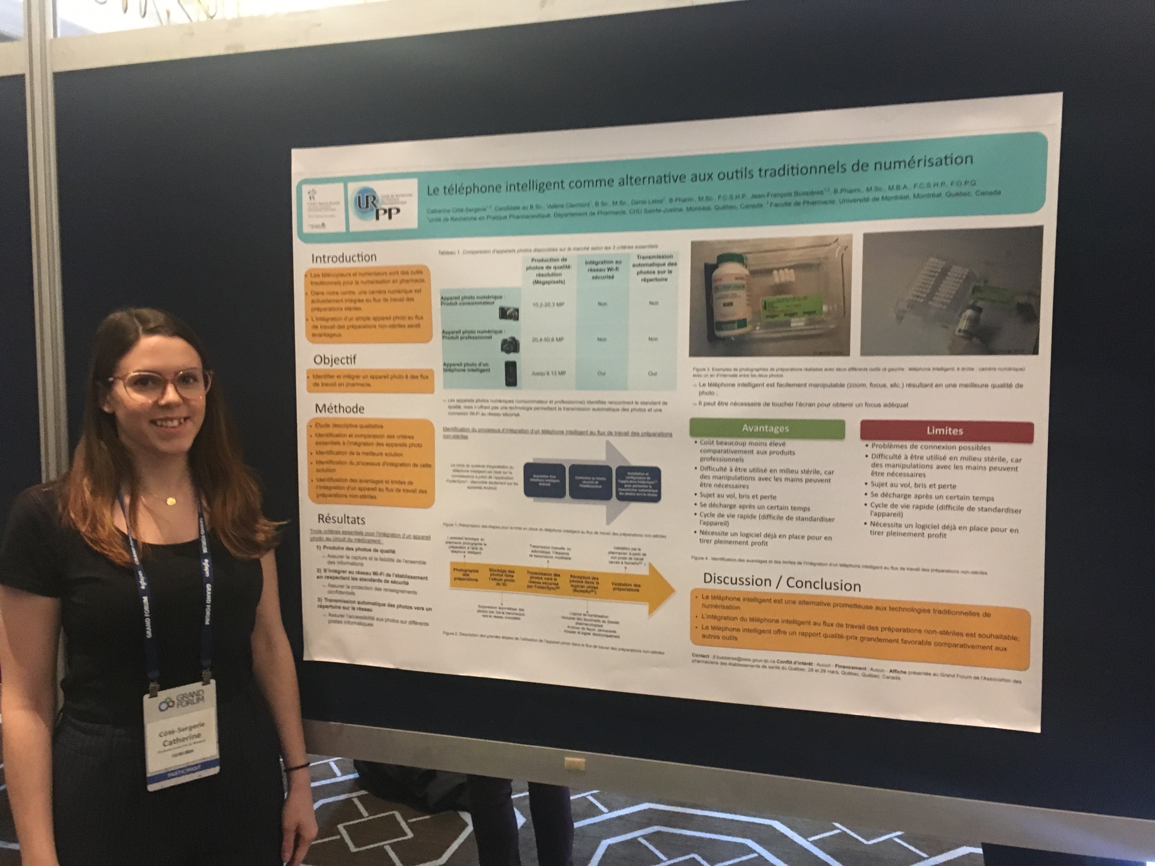 - Côté-Sergerie C, Tanguay C, Clermont V, Lebel D, Bussières JF. Numérisation par téléphone intelligent pour la validation des ordonnances dans le cadre de la recherche : étude de faisabilité. Association des pharmaciens des établissements de santé du Québec. (NUMERISATION7)