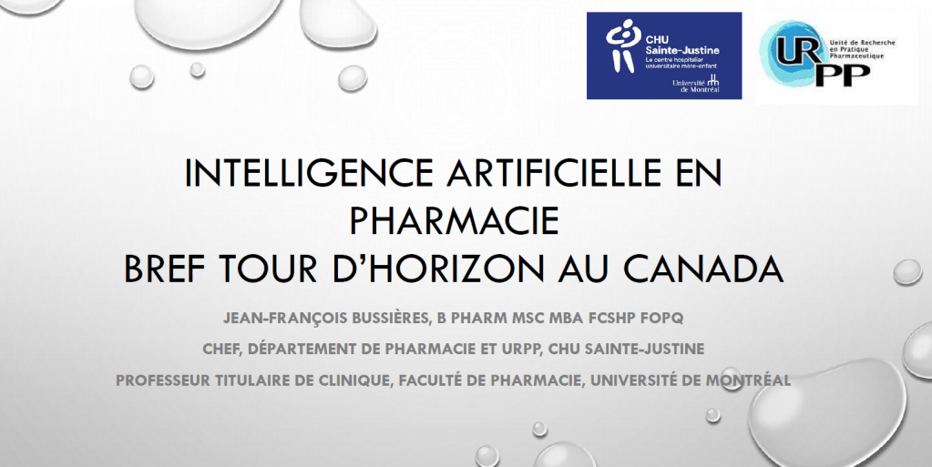 Dans le cadre du congrès Hopipharm 2022 tenu à Lille (France) du 18 au 20 mai 2022, il nous fait plaisir de participer à un atelier de travail sur l’intelligence artificielle. L’Équipe de l’URPP s’intéresse à l’intelligence artificielle depuis plusieurs années.