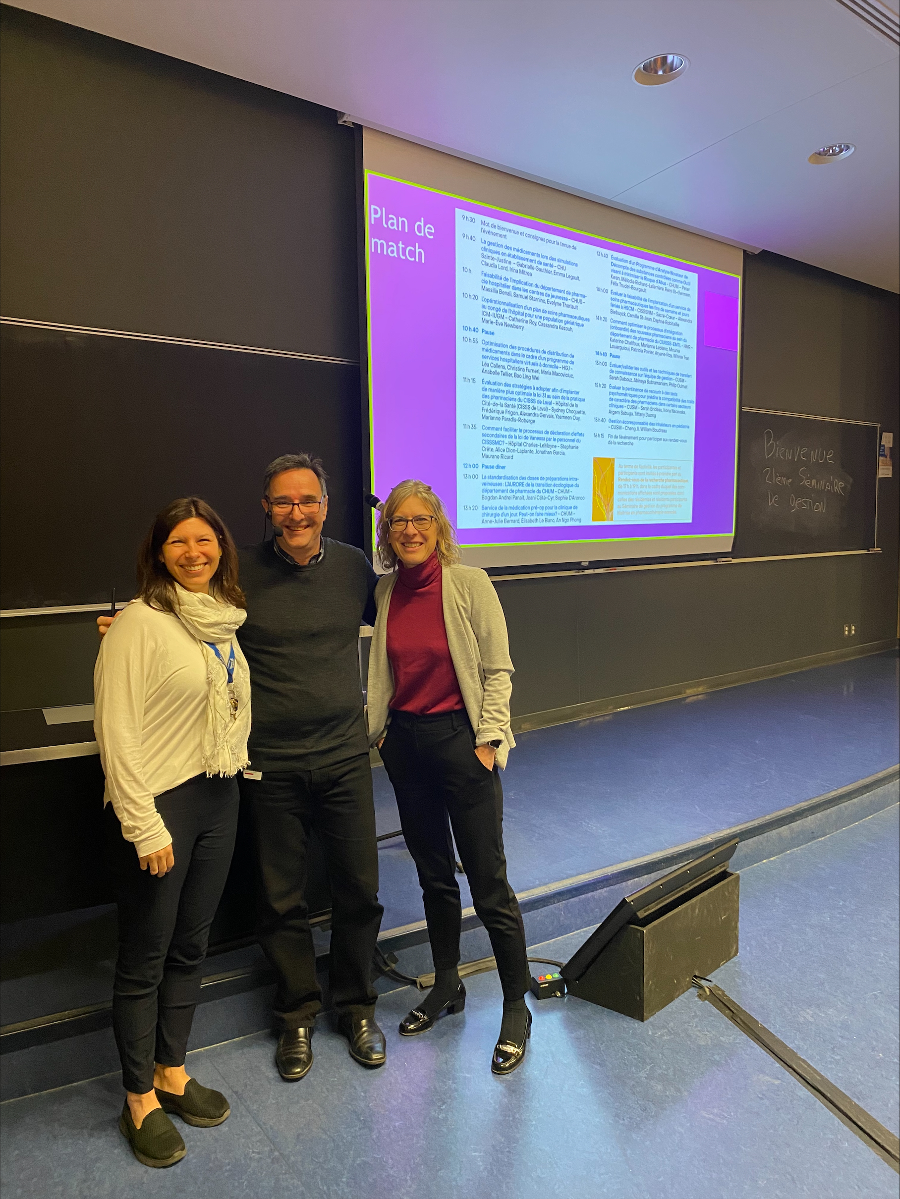 Sous la responsabilité du professeur titulaire de clinique, Jean-François Bussières, la Faculté de pharmacie de l’Université de Montréal tenait le jeudi 7 décembre 2023, en mode hybride, le 21ème séminaire de gestion pharmaceutique en établissement de santé. Cinquante-et-un pharmaciens résidents ont participé à 14 présentations orales. On peut consulter le programme en ligne tel que disponible ci-dessous. Les pharmaciens intéressés peuvent contacter les pharmaciens résidents ou les équipes de gestion pour en savoir davantage. À noter que l’événement était accrédité par l’Ordre des pharmaciens du Québec.