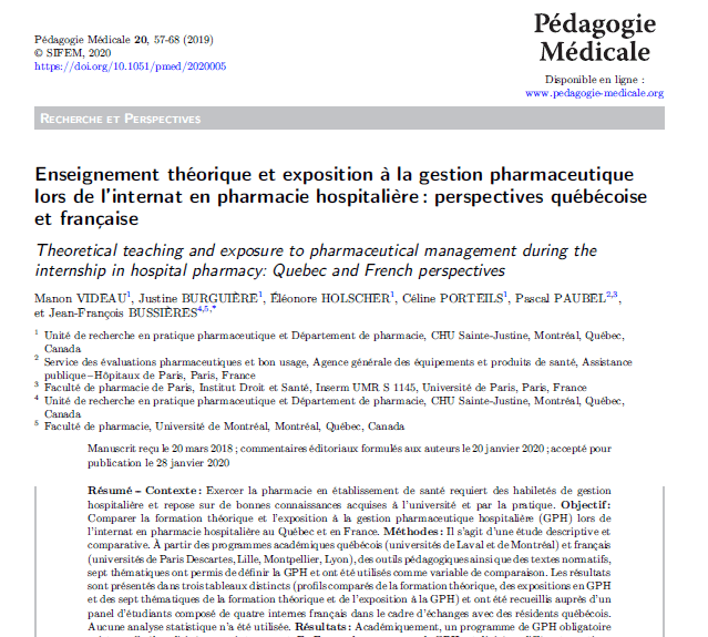Vous pouvez consulter notre article publié dans la revue Le Pharmacien Hospitalier et Clinicien et notre affiche présentée au congrès AÉÉSPUM le 2 mai 2019 à Montréal, Canada.