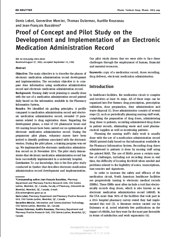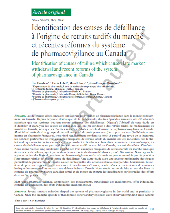 Vous pouvez consulter notre article publié dans le Journal de Pharmacie Clinique.