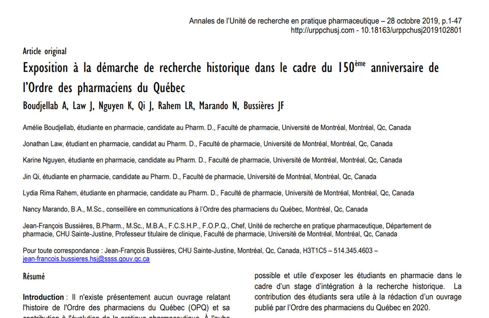 la publication scientifique des pharmaciens hospitaliers québécois