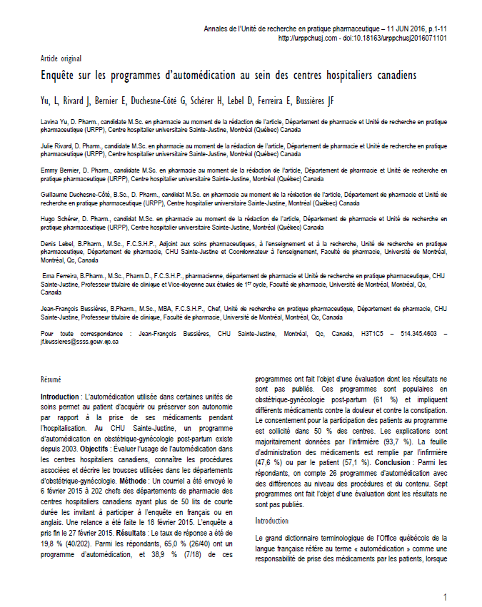 Dans le cadre du programme intégré de santé Haïti (PISH), un pharmacien du CHU Sainte-Justine a été désigné afin de revoir l’organisation des services et soins pharmaceutiques. Le PISH est un projet sous l’égide de la Croix-Rouge canadienne qui implique notamment le CHU Sainte-Justine.