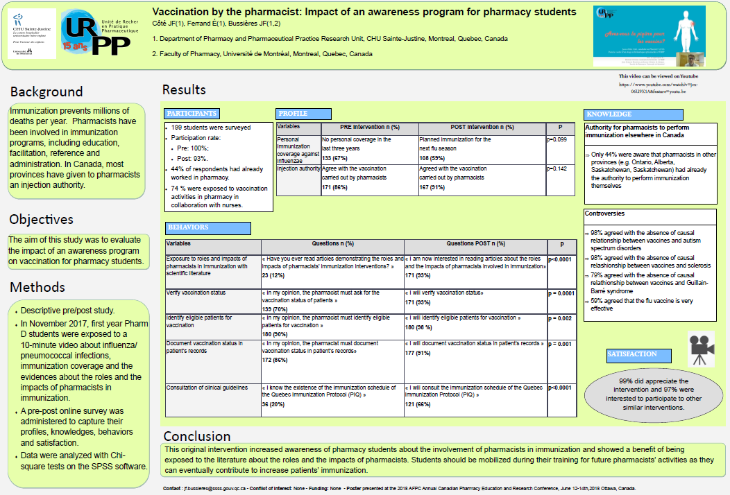 Vous pouvez consulter notre article publié dans la revue Pédagogie médicale et notre affiche présentée au Grand Forum 2021 de l’Association des pharmaciens des établissements de santé du Québec (A.P.E.S.) le 25 mars 2021.
