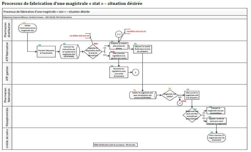 Un exercice de révision des processus a été mené par l’équipe pharmacie (Suzanne Atkinson et coll.) en collaboration avec Caroline Comeau, coordonnatrice en amélioration continue des processus clinico-administratifs de la Direction de la performance et de la qualité.