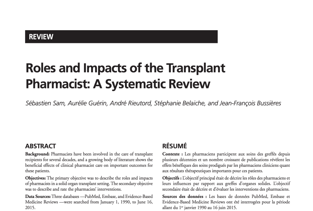 Vous pouvez consulter notre article publié dans le Canadian Journal of Hospital Pharmacy et notre affiche présentée au congrès de la Société française de pharmacie clinique (SFPC), le 26 janvier 2020 à Marseille, France.