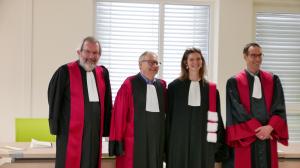 Étaients présents lors du jury, sur place le Dr Éric Caudron, le Dr Pascal Paubel et le professeur Françoise Brion et en visioconférence de Montréal, le pharmacien Jean-François Bussières, directeur de l’URPP. On retrouve ci-dessous une photo de Claire Lambert lors du serment. Bravo pour cet accomplissement.