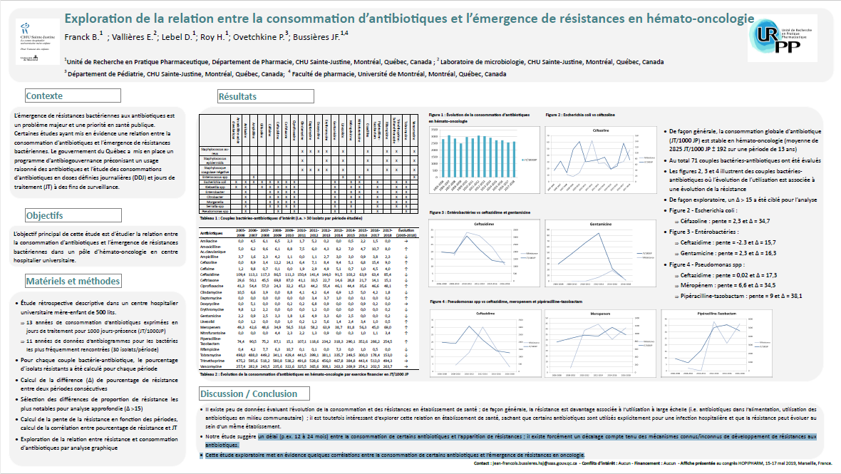 Étude 2017 : Journal of Oncology Pharmacy Practice / Affiche présentée au congrès ASHP Midyear Clinical Meeting, 4-7 Décembre 217, Orlando, USA.