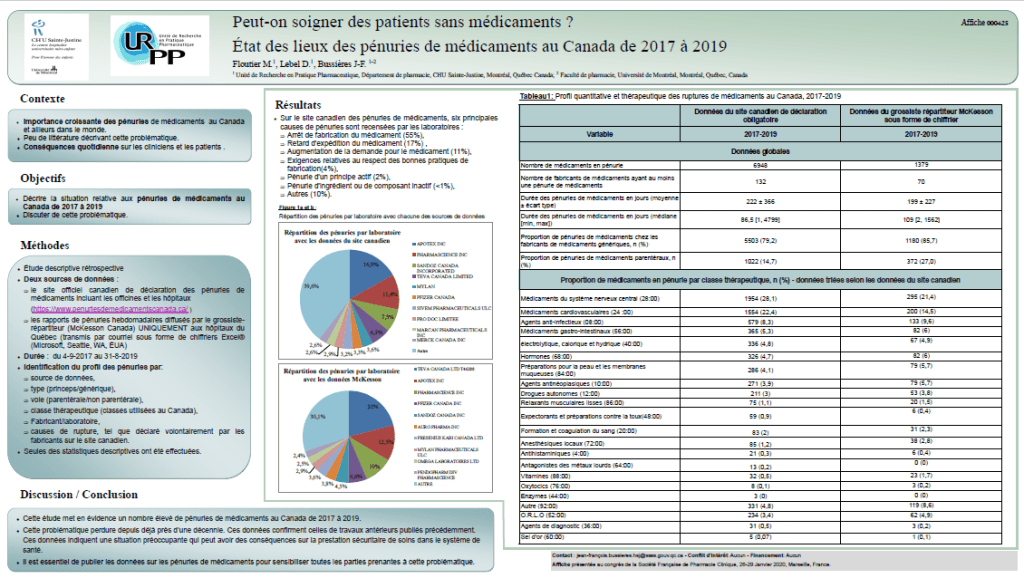 Vous pouvez consulter notre article publié dans le Canadian Journal of Hospital Pharmacy et notre affiche présentée au Congrès de la Société Française de Pharmacie Clinique, le 26 Janvier 2020, à Marseille, France.