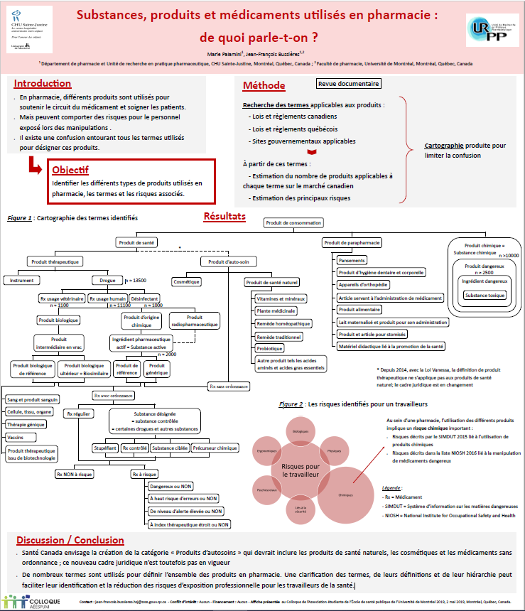 Vous pouvez consulter notre article publié dans la revue Pharmactuel et notre affiche présentée au Colloque de l’Association étudiante de l’École de santé publique de l’Université de Montréal 2019, le 2 mai 2019, à Montréal, Québec, Canada.