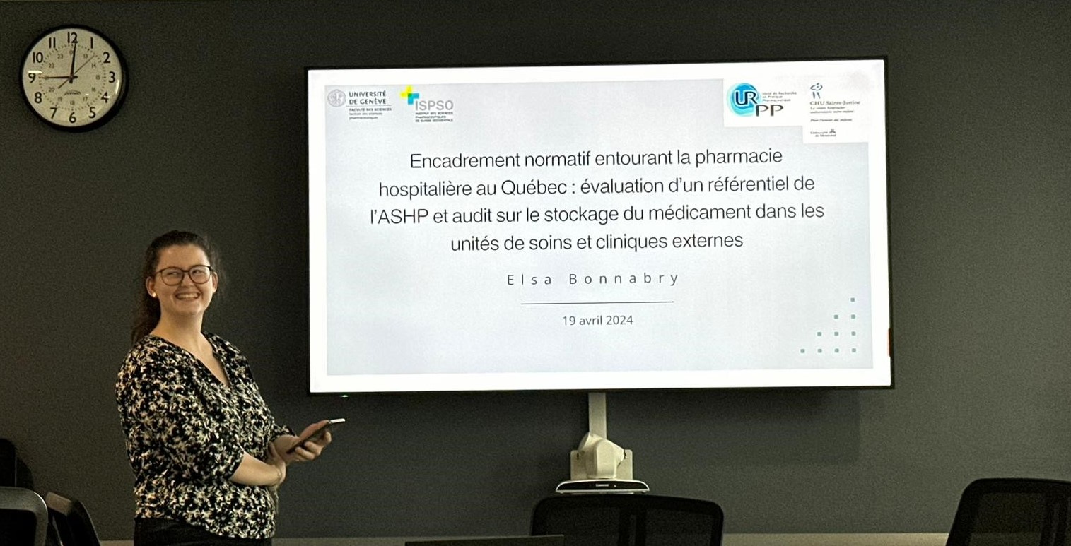 Son projet portait sur : « Encadrement normatif entourant la pharmacie hospitalière au Québec : évaluation d’un référentiel de l’ASHP et audit sur le stockage du médicament dans les unités de soins et cliniques externes ».