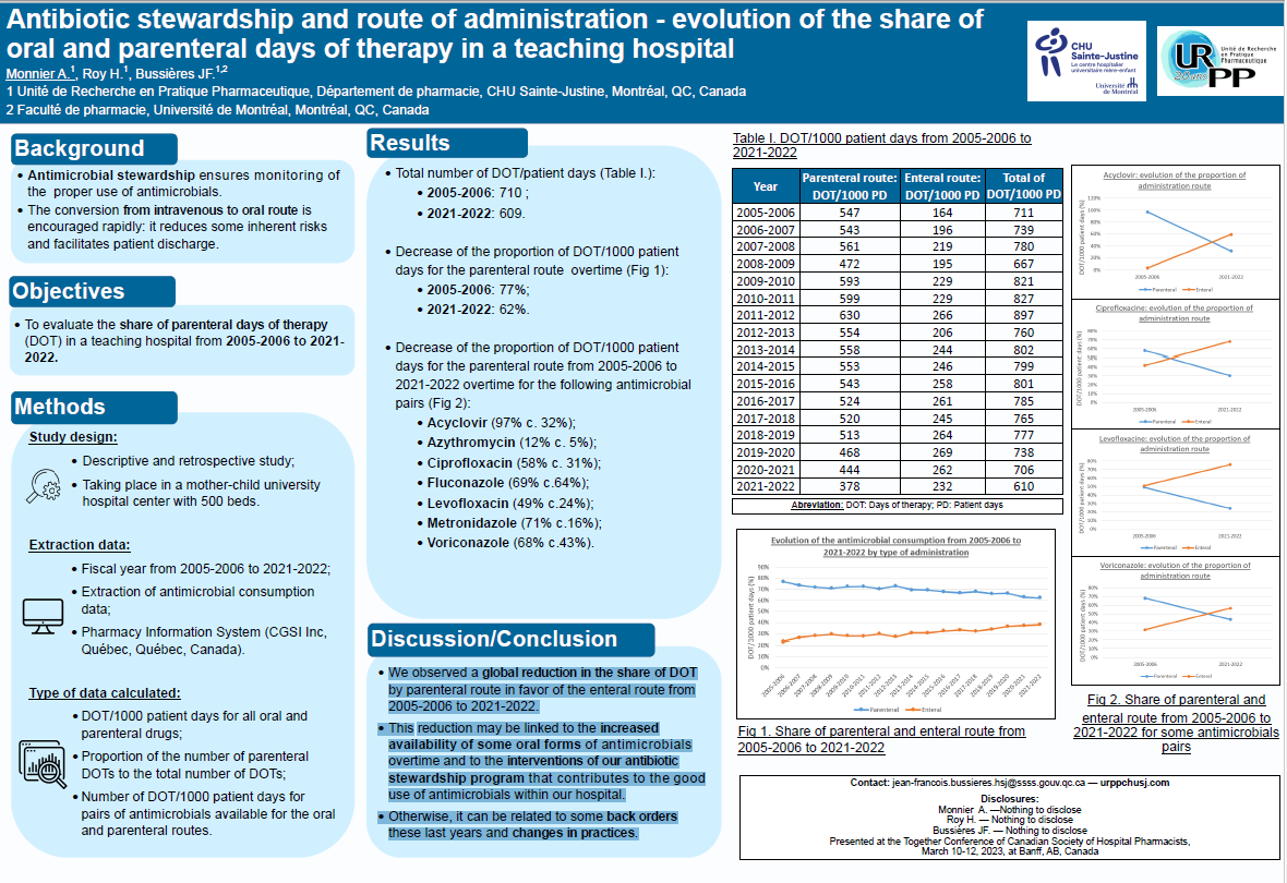 Vous pouvez consulter notre affiche présentée au congrès Together Canada’s Hospital Pharmacy Conference , le 29 janvier – 6 février 2022.