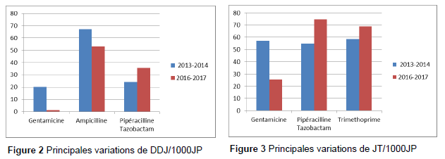 Les résultats ont montré qu’il existe une réduction globale de la part de DOT par voie parentérale en faveur de la voie entérale de 2005-2006 à 2021-2022. Cette réduction peut être liée à la disponibilité accrue de certaines formes orales d’antimicrobiens au fil du temps et aux interventions de notre programme de gestion des antibiotiques qui contribue à la bonne utilisation des antimicrobiens dans notre hôpital. Autrement, elle peut être liée à certaines commandes en souffrance ces dernières années et à des changements de pratiques.
