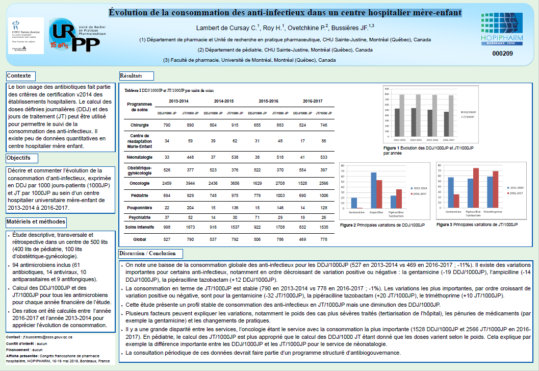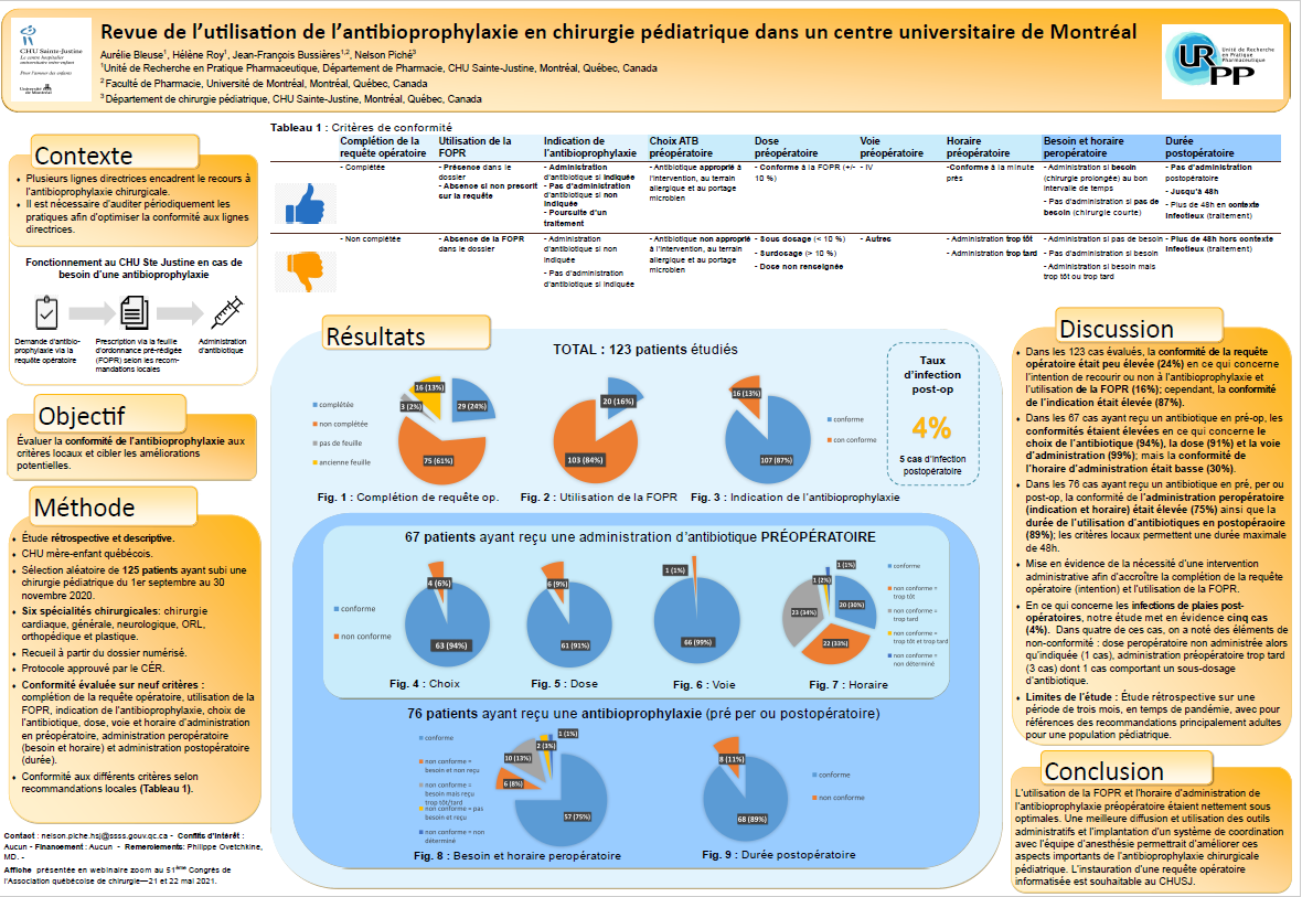 Vous pouvez consulter notre affiche présentée à la Together Conference of Canadian Society of Hospital Pharmacists le 10 mars 2023, à Banff, AB, Canada.