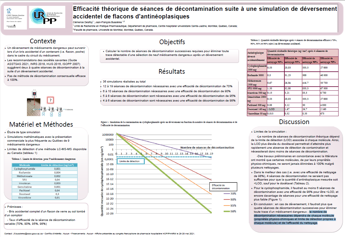 Vous pouvez consulter notre affiche présentée à la Canadian Society of Hospital Pharmacists lors de la Professional Pratice Conference (PPC 2021) , le 25 mars 2021.