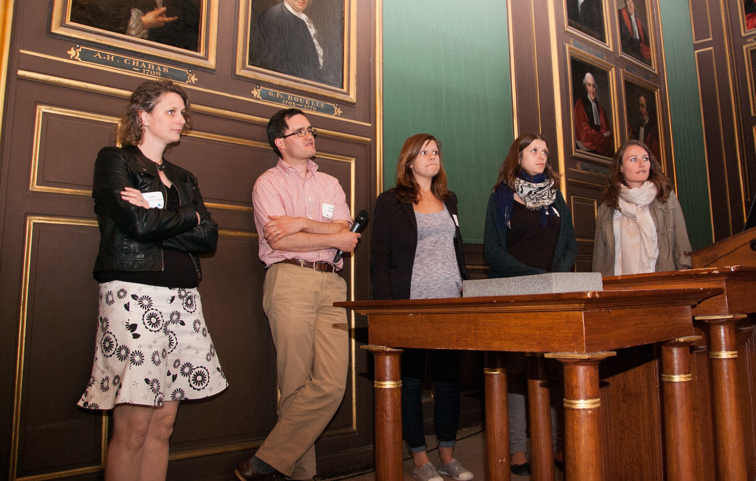 Collaborateurs de lURPP présents au Colloque, de gauche à droite : Guillaume Vaquer, Virginie Alary, Pierre Barret, Delphine Merger, Maxime Thibault. Cynthia Tanguay, Jennifer Corny, Guillaume Hébert, Françoise Brion, Sonia Prot-Labarthe, Myriam Berruyer, Aurélie Guérin, Ursula Winterfeld, Manon Gillet, Cécile Combes, Alexia Janes, Olivier Bourdon, jean-François Bussières
