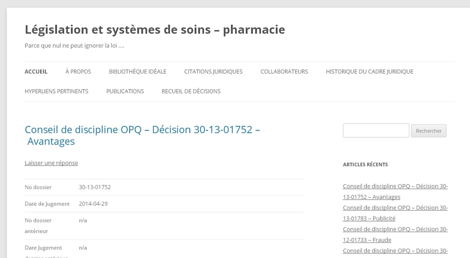 e rester à l’affût des décisions juridiques impliquant les pharmaciens!