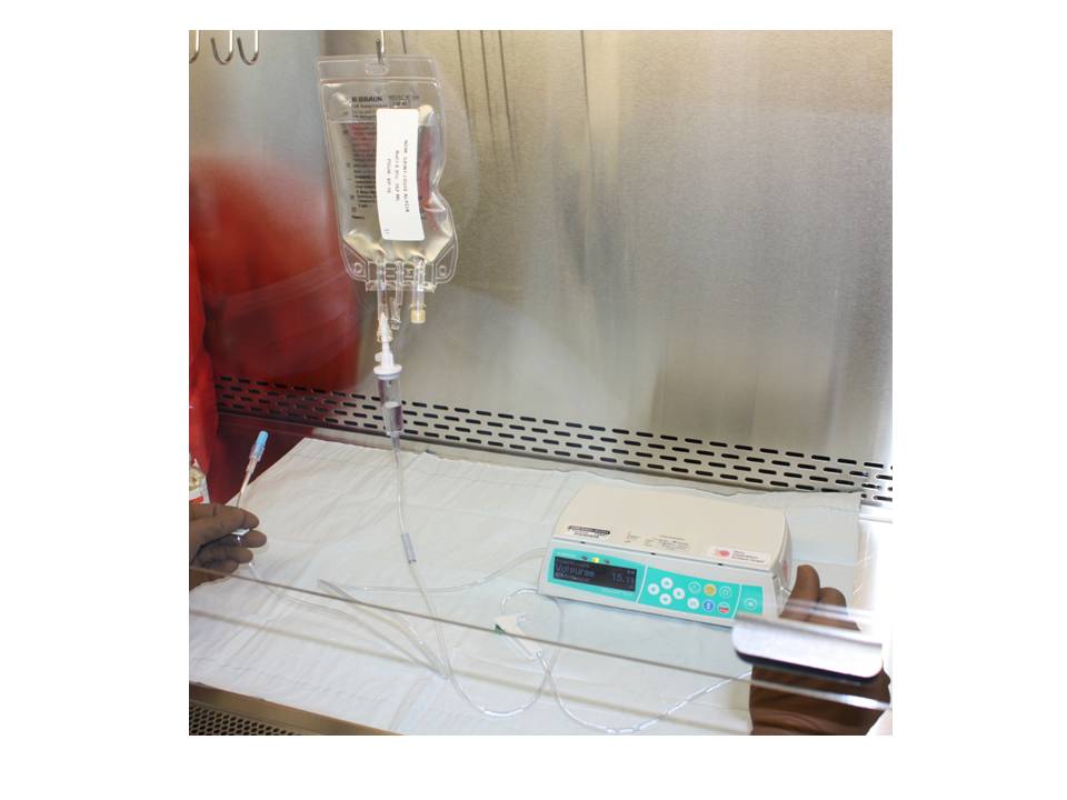 Ensuite, nous avons testé l’utilisation d’un système en circuit fermé pour les préparations à la pharmacie. Tel que rapporté dans la littérature, cette solution a permis une diminution de la contamination. Toutefois, les assistants techniques en pharmacie ont soulevé quelques problèmes à sa manipulation, tel que des fuites, une augmentation de la charge de travail et une manipulation difficile. Nous croyons qu’une évaluation des considérations économiques et ergonomiques devrait être réalisée pour confirmer un avantage coût/efficacité dans le système de la santé. Nous n’avons pas implanté cette solution dans notre centre.